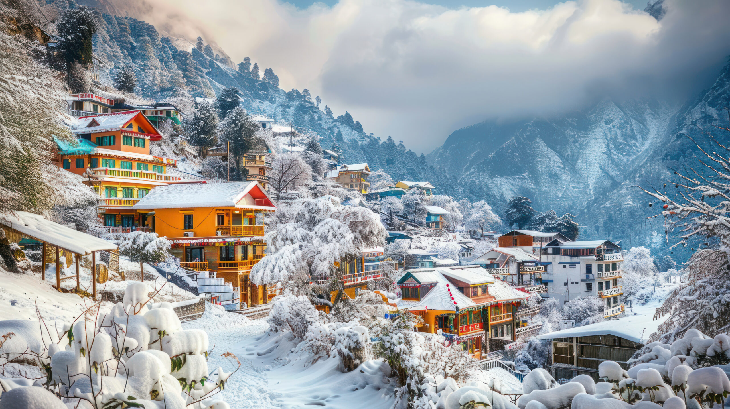 Manali, the Snowy Paradise of Himachal, offers a blend of natural beauty and adventure. Stroll through the serene cedar forests around Hadimba Devi Temple and soak in the healing waters of Vashisht Hot Springs. Experience the thrill of Solang Valley with paragliding, skiing, and snow adventures, or cross the majestic Atal Tunnel to reach the pristine Lahaul Valley. Trek to the scenic Jogini Waterfall or Bhrigu Lake for breathtaking mountain views. Wander the charming lanes of Old Manali for cozy cafés and vibrant culture, and drive up to Rohtang Pass for unforgettable snow-filled landscapes.